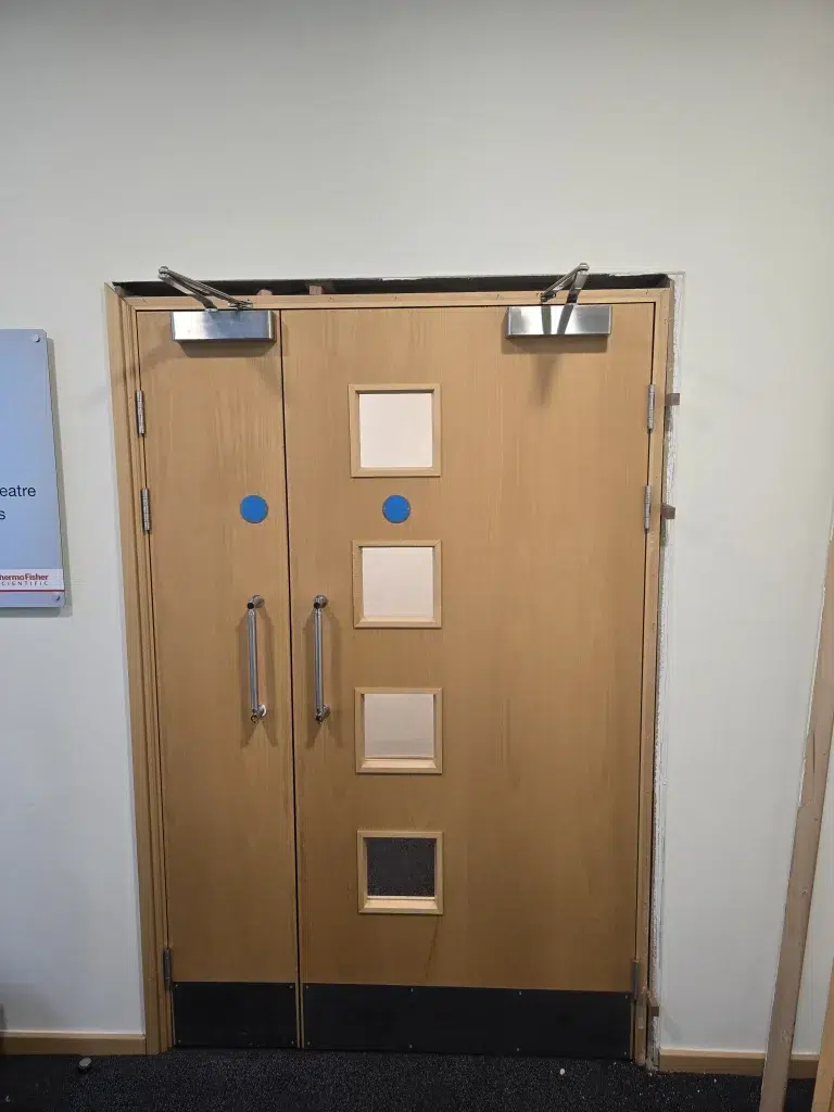 - Hardware: A check of hinges, closers and other fire door hardware, ensuring they are securely fitted and working correctly.